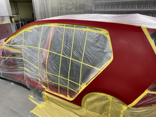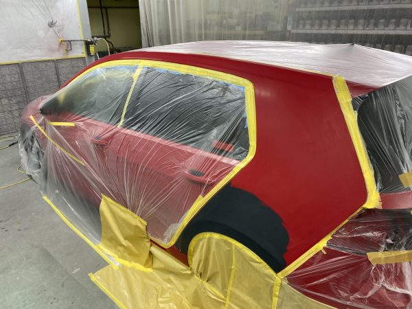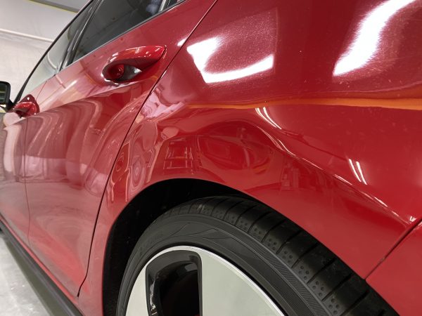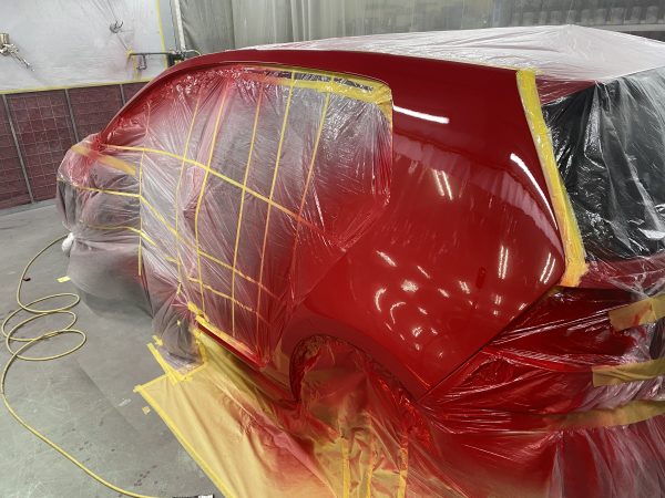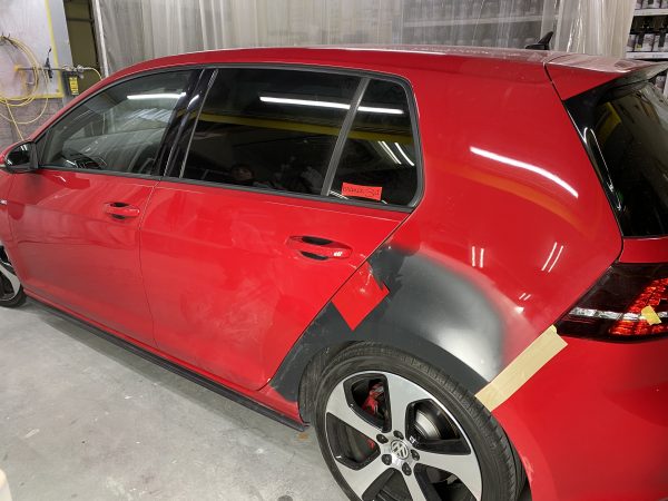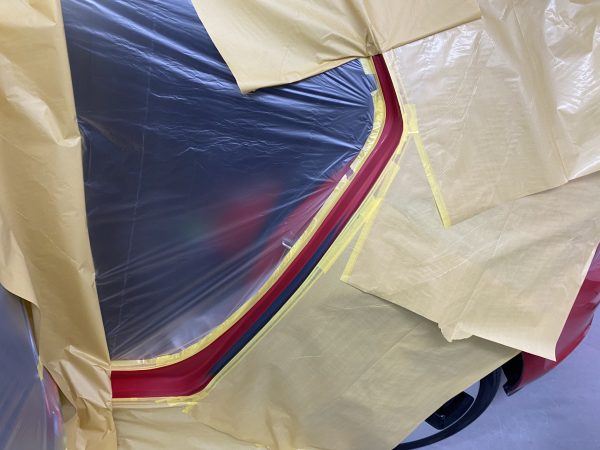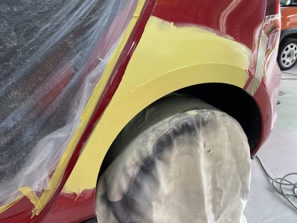 技術です。 今回の修理箇所はクォーターパネルの端部まで色がかかる為、リヤドアをぼかし塗装する