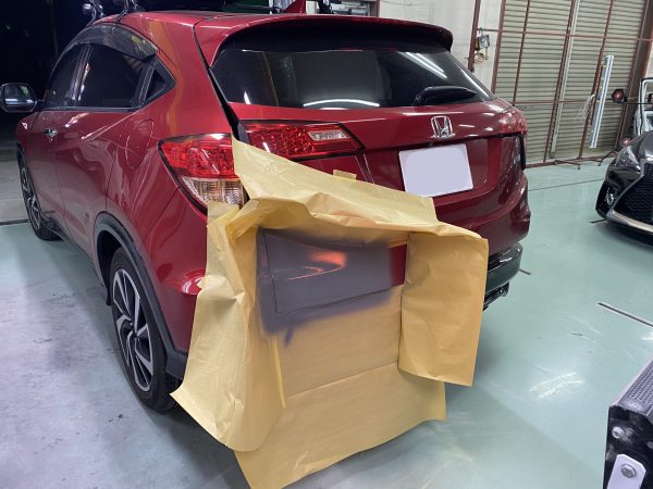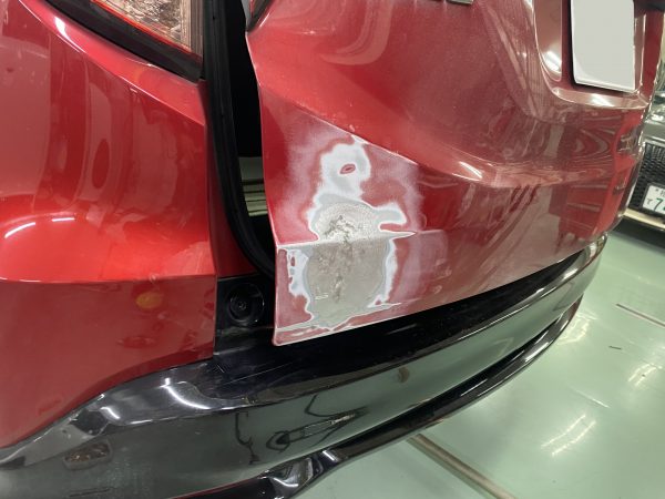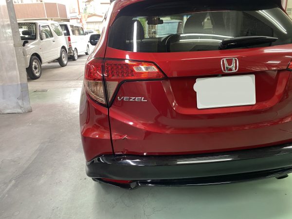ホンダ ヴェゼル バックドア 板金修理 です٩( ”ω” )و