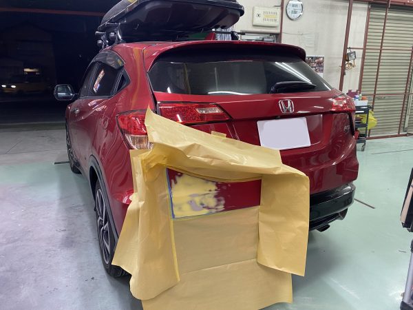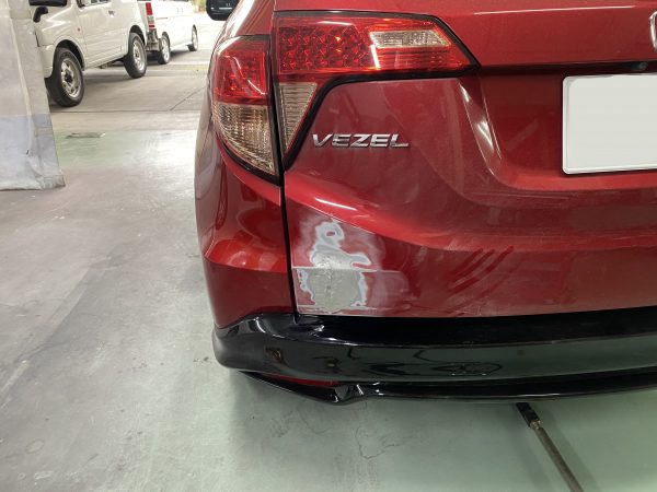 ホンダ ヴェゼル バックドア 板金修理 です٩( ”ω” )و